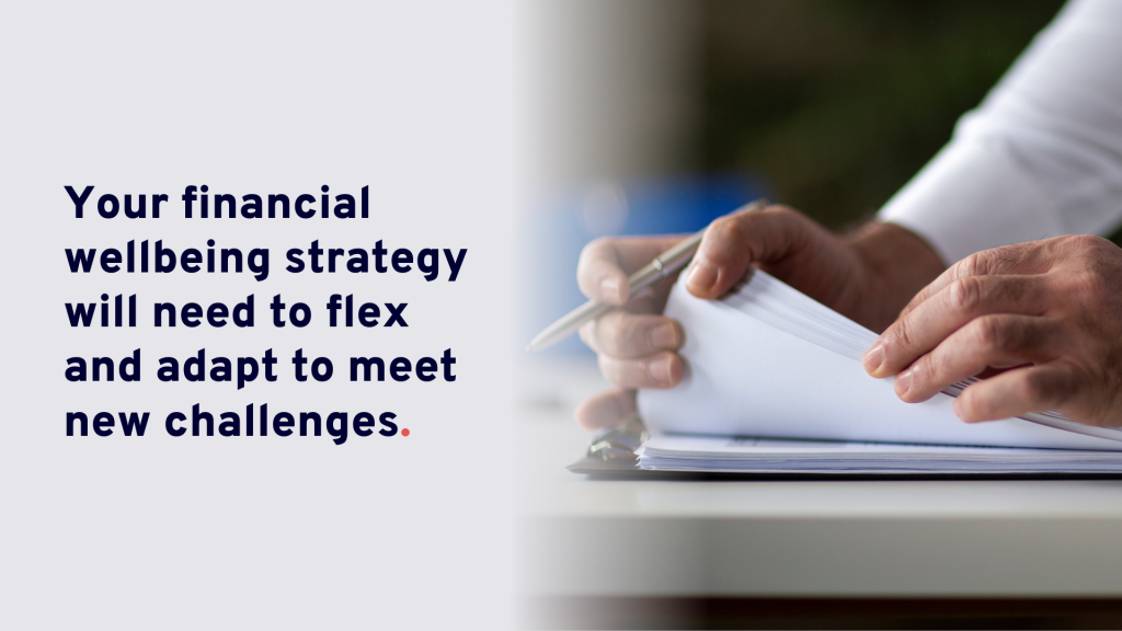 An employee financial wellbeing strategy is not a one-and-done process. As the business, employees, and the economy itself continue to change, your financial wellbeing strategy will need to flex and adapt to meet new challenges.